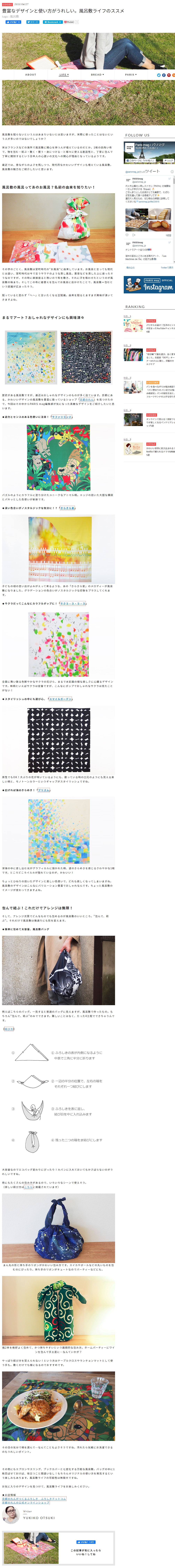 豊富なデザインと使い方がうれしい。風呂敷ライフのススメ 風呂敷を知らないという人はあまりいないとは思いますが、実際に使ったことはないという人が多いのではないでしょうか? 実はフランスなどの海外で風呂敷に関心を持つ人が増えているのだとか。1枚の四角い布で、物を包む・結ぶ・敷く・覆う・身につける…と様々に使える創造性と、丁寧に包んで丁寧に開封するという日本人の心遣いの文化への関心が理由となっているようです。 最近では、昔ながらのよさを残しつつ、現代的なかわいいデザインも増えている風呂敷。風呂敷の魅力をご紹介したいと思います。続き下記へ