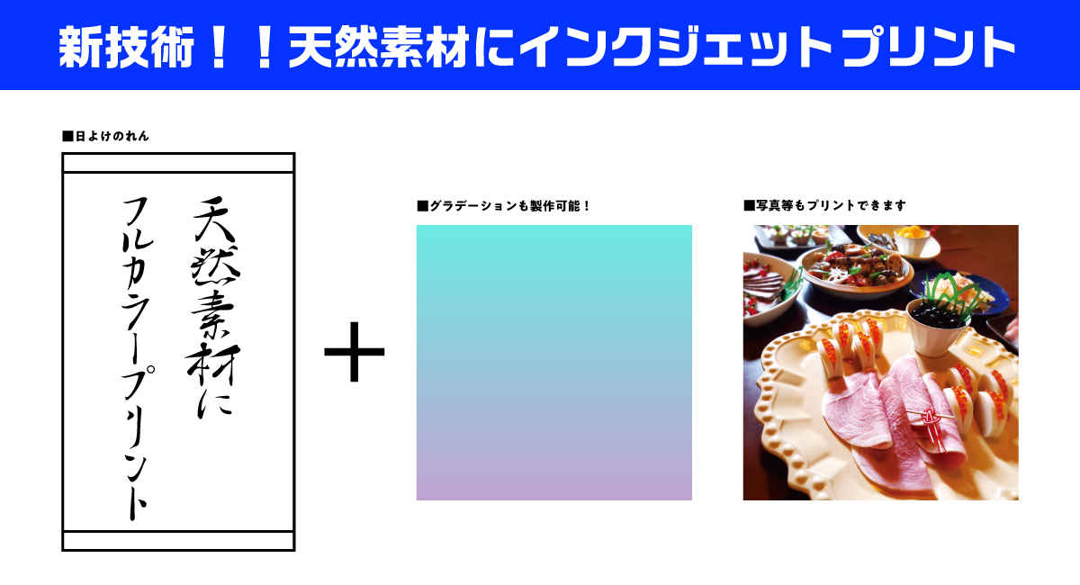 SDGsの意識した水を使わない(排水を出さない)天然素材へのインクジェットプリントでのれん
